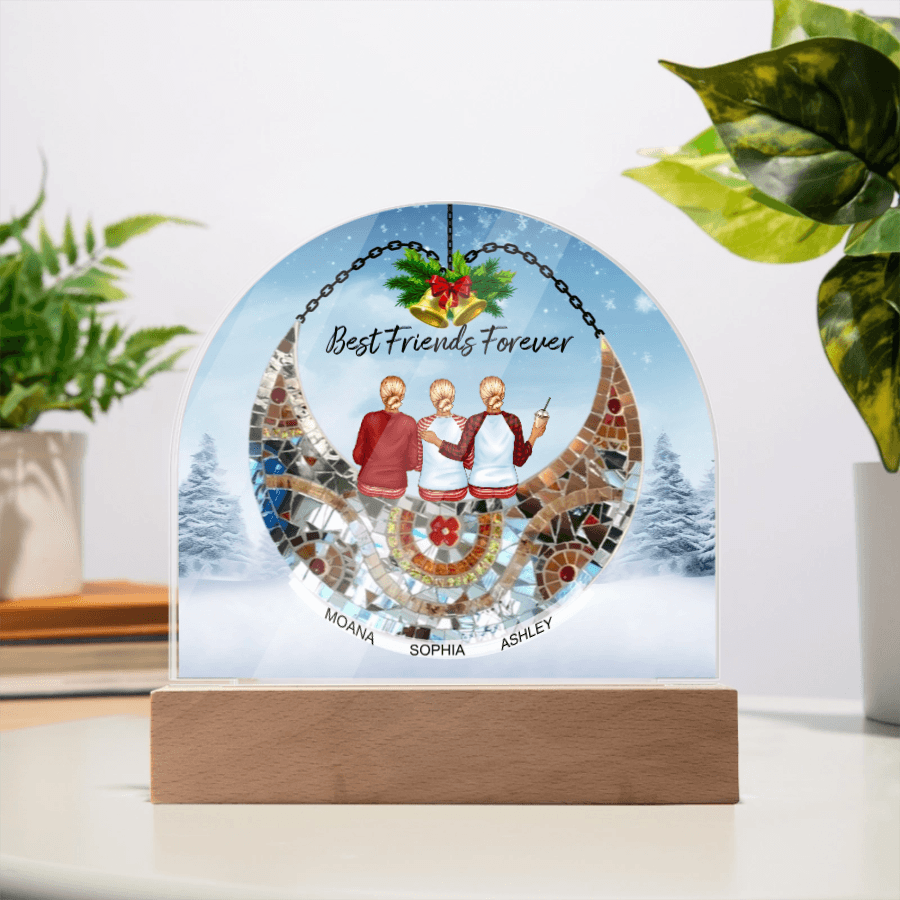 Give a gift that celebrates friendship and the magic of the holiday season! Our Personalized Christmas Moon Plaque for Best Friends captures cherished moments with friends, featuring customizable designs of two or three friends in cozy Christmas pajamas sitting on the moon. Add each friend’s name for a truly heartwarming gift they’ll treasure for years.