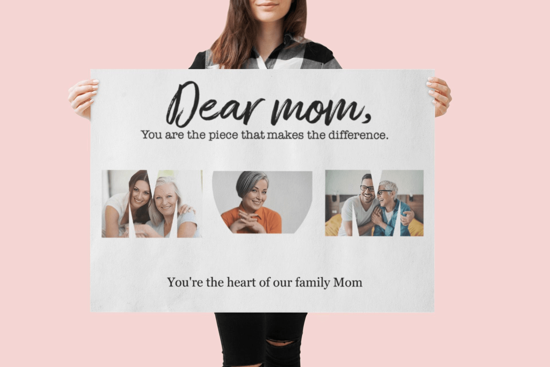 Our acrylic prints come ready to hang, effortlessly floating 1.5" off the wall for a contemporary and elegant presentation. Choose from a range of customizable options, including heartfelt messages for the title, allowing you to create a truly unique and meaningful gift that celebrates the special bond between you and your mom.