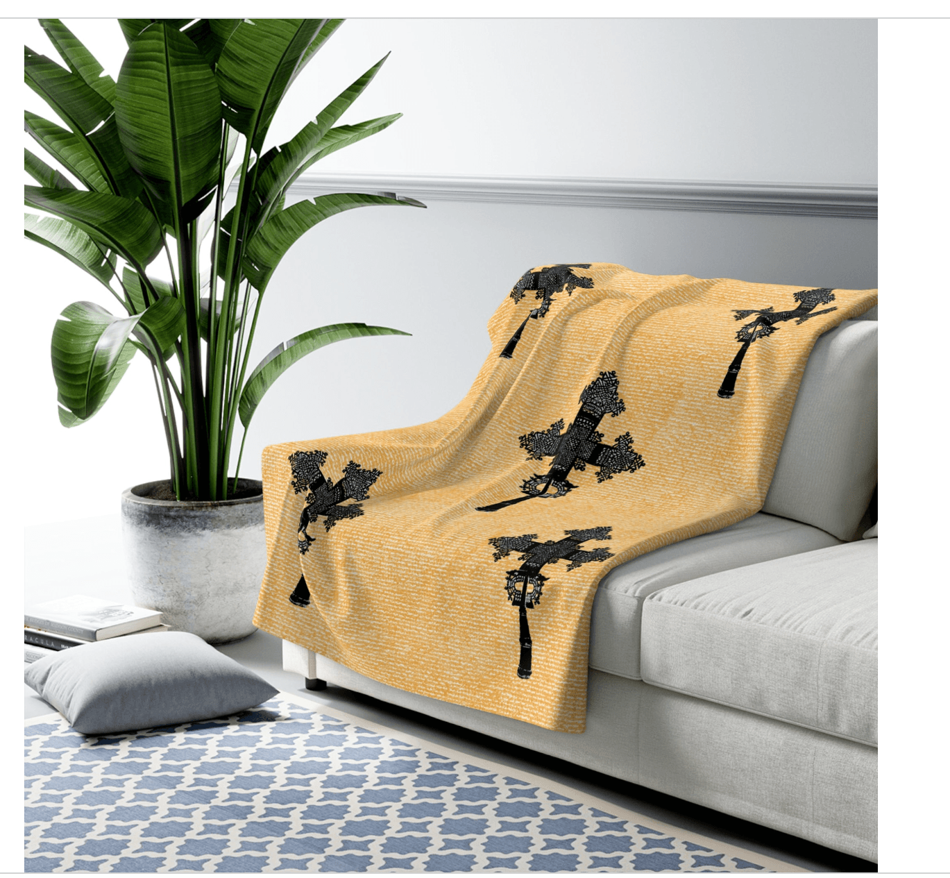 Ethiopian Cross Tilf design Velveteen Plush Blanket| Present, Cute Holiday Gift Idea, Custom Corporate Gift
